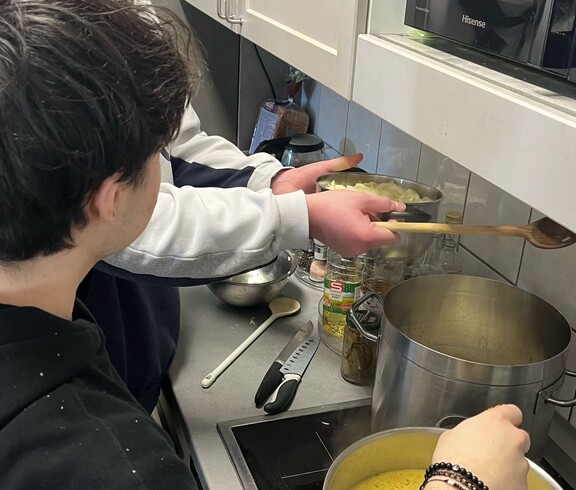 In dem Fach Sozialmanagement und Projektmanagement haben wir (Nico, Richelle und Philip der 4HS) dieses Semester ein soziales Projekt geplant. Unser Plan war es, im ARGE Wien Soziales Wohnen GmbH Haus mit den Bewohner*innen gemeinsam zu kochen. Nach vorheriger Projektplanung im Unterricht und einem gemeinsamen Einkauf, kochten wir zusammen mit den Bewohner:innen und den Sozialarbeitern und den Sozialarbeiterinnen ein Kartoffel-Gulasch - welches dann auch gemeinsam gegessen wurde! Wir erhielten nur positives Feedback! Wir ließen ihnen auch ein Geschenk dort. Richelle bastelte aus einem Einmachglas ein kleines Gefäß, welches wir mit einfachen Rezepten befüllten. Nun wird einmal in der Woche ein Rezept aus dem Glas gezogen, welches die Köchin dann zubereitet. Es hat uns große Freude bereitet, dieses Projekt zu organisieren und durchzuführen! Ein großes Dankeschön geht an Frau Prof. Matejka, Herrn Direktor Walter, Frau Prof. Gonter, und die ARGE Wien, welche das Projekt ermöglicht haben!